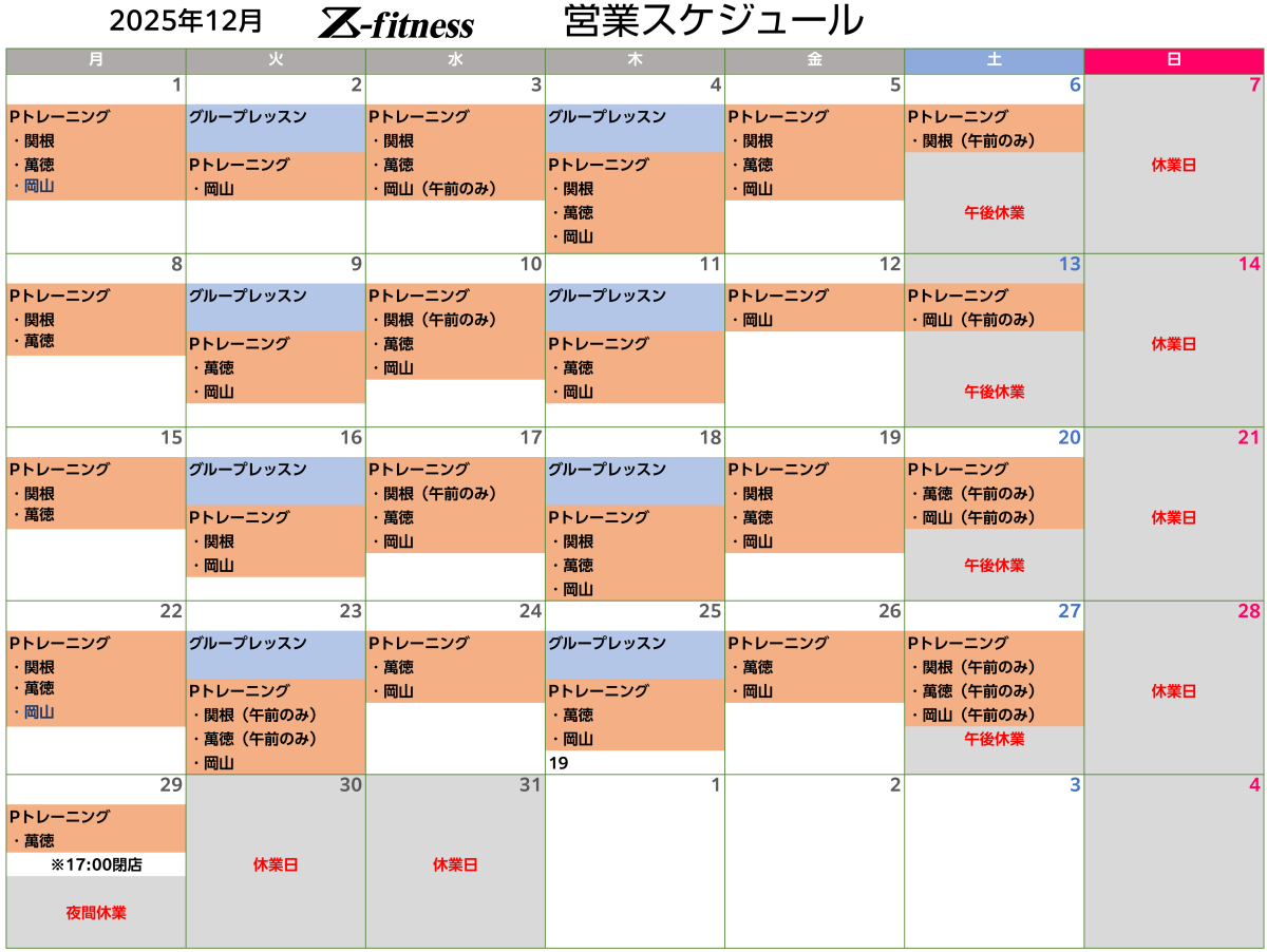 | 2025.03.31 | 2025年4月のスケジュールを掲載しました。4月より萬徳トレーナーが正式に加入いたします |