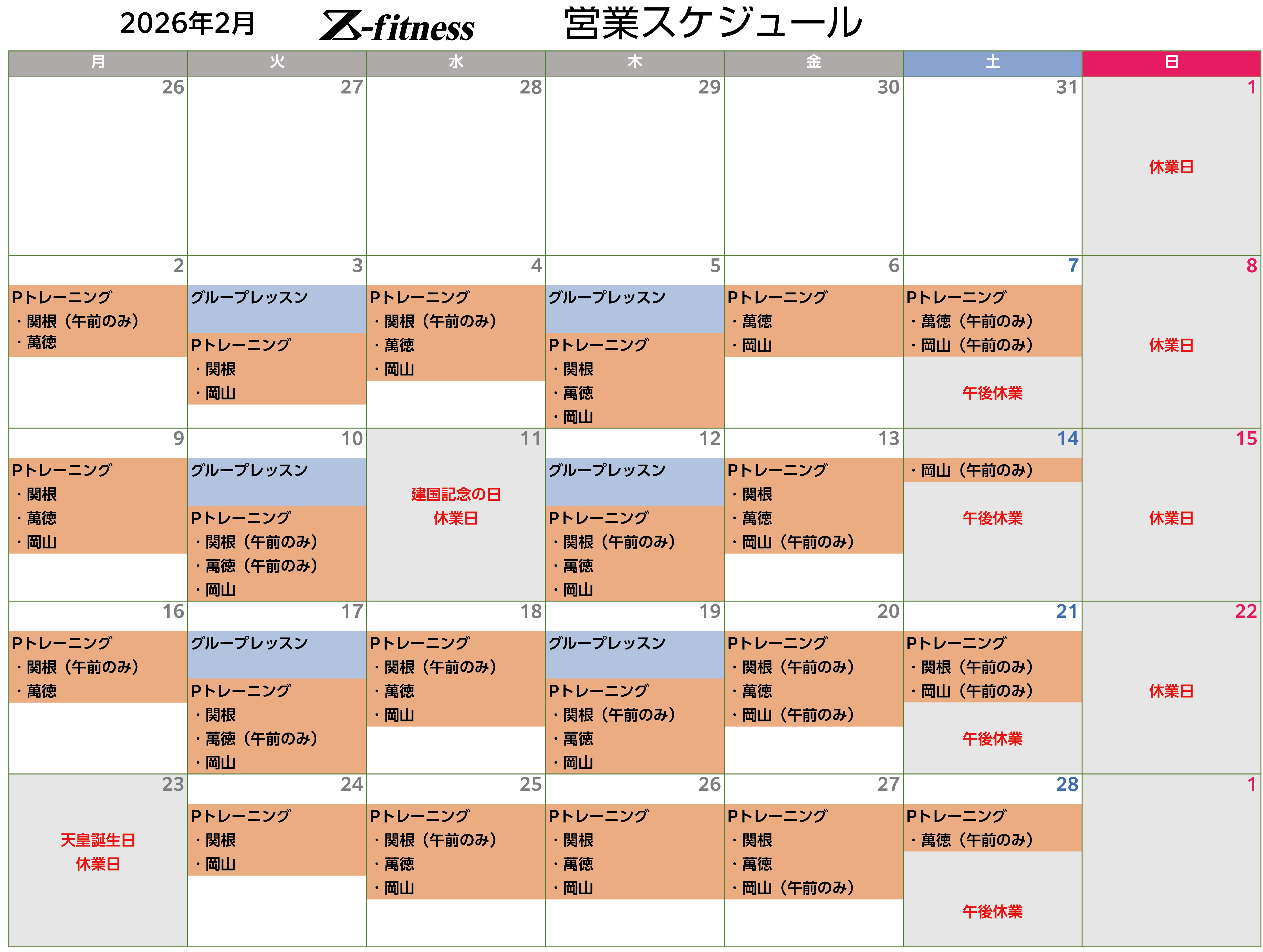 | 2025.03.31 | 2025年4月のスケジュールを掲載しました。4月より萬徳トレーナーが正式に加入いたします |