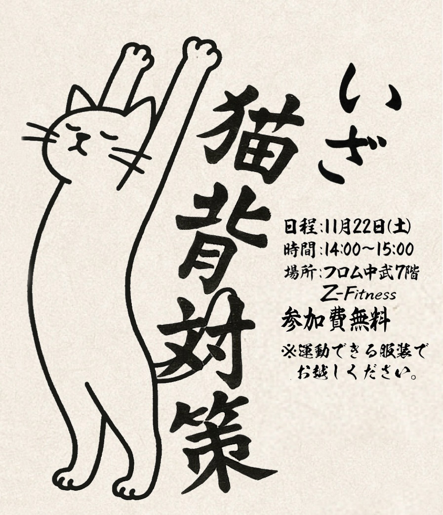 | 2025.11.13 | 2025年11月22日 14:00-15:00で「いざ猫背対策」を行います。参加費無料です。奮ってご参加ください。 |