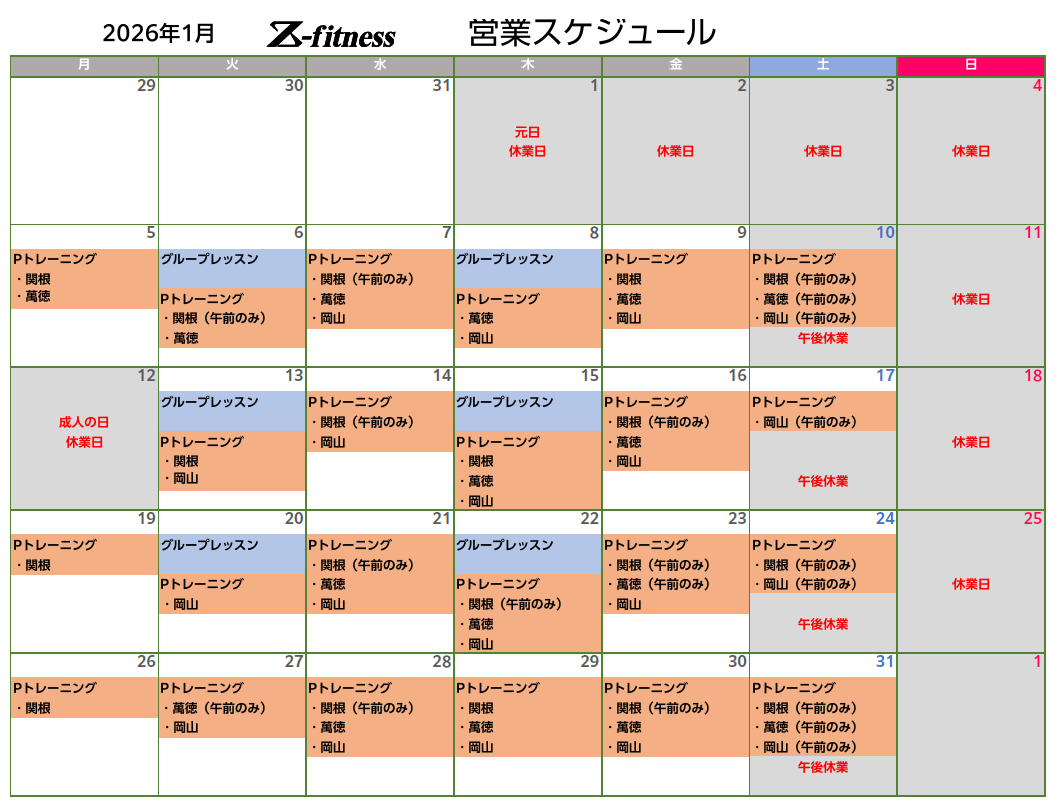 | 2025.03.31 | 2025年4月のスケジュールを掲載しました。4月より萬徳トレーナーが正式に加入いたします |